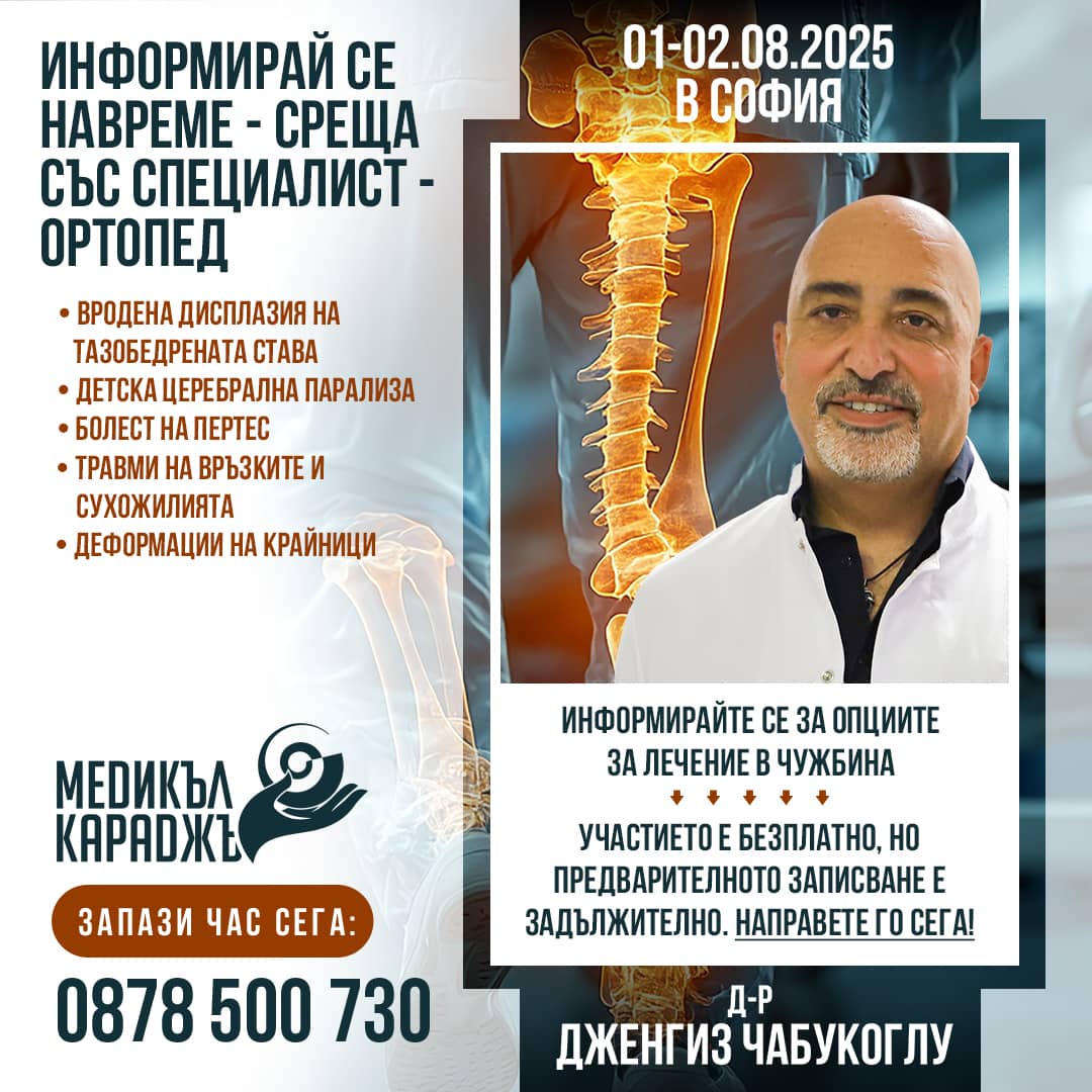 Those wishing to receive a second medical opinion from Prof. Dr. Taner Korkmaz on September 22, 2023 in the city of. 0879 977 402 and 0879 977 401 or request the desired appointment online at https://www.medikara.bg/.
