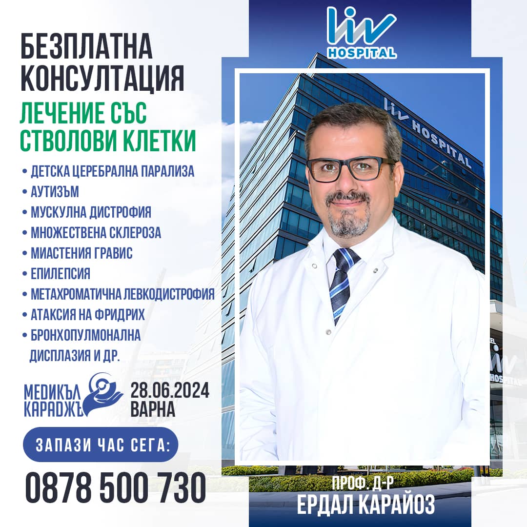 С радост обявяваме, че световноизвестният специалист по лечение със стволови клетки и генна терапия, проф. д-р Ердал Карайоз от болница Лив, Истанбул, ще прoведе БЕЗПЛАТНИ консултации във Варна по покана на Здравен Информационен Център Медикъл Караджъ!