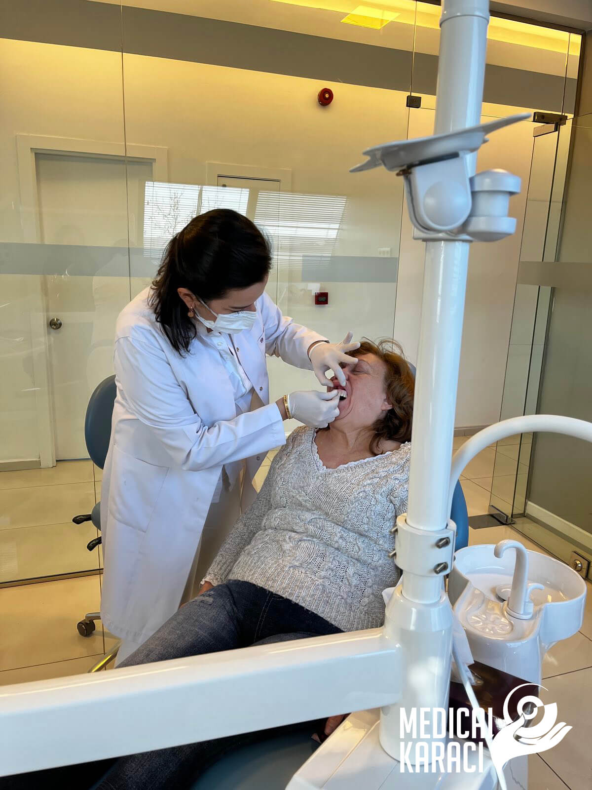 Майка ми има проблеми със зъбите от много млада възраст. Всъщност проблемът винаги е бил във венците ѝ. Зъбите са здрави, но венецът ги изхвърля. И така след много години и много неуспешни, болезнени лечения в България тя посети консултацията с д-р Бирсен Юрдаер в офиса на ЗИЦ “Медикъл Караджъ“ в гр. Пловдив през октомври 2021. Когато д-р Бирсен видя протезата ѝ каза, че не е виждала такова нещо от 30 години. Обясни ни, че не е направена лошо, но това е само временен вариант и задължително трябва да се поставят импланти, за да може майка ми отново да води спокоен начин на живот, да се отърве от неудобната протеза и отново да усеща вкуса на храната, която консумира. Дентална клиника „Дентхелт“ изготви план за лечението ѝ с цени към него. Чрез ЗИЦ “Медикъл Караджъ“ запазихме час за януари 2022 и на 13.01 по обяд пристигнахме в клиниката за преглед.