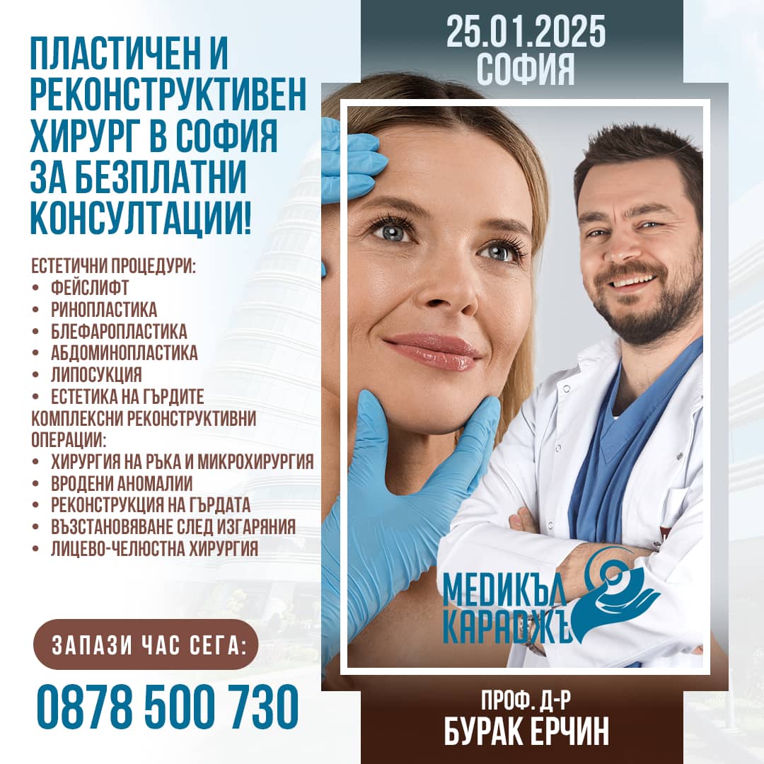 Новата година е идеалният момент за ново начало и трансформация! Здравен информационен център „Медикъл Караджъ“ с удоволствие ви кани на БЕЗПЛАТНИ консултации с проф. Бурак Серджан Ерчин – водещ специалист в пластичната и реконструктивна хирургия.